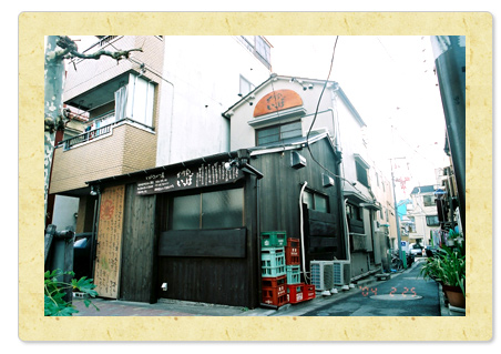 | 外観入り口部分にはオリジナルのドアを引き戸式に 取り付けました。窓下のが可動式カウンターになっている部分になります。 古屋も看板でうまくデザインしアクセントとして飾りつけ することで風合いのあるデザインが完成しました。 | 飲食店は厨房設備に大変お金がかかってしまいます。できるだけ内装にかかる費用を抑えようと、 クロスなどは現況のままを使用し、 装飾品でアクセントをつける等の工夫をしました。 |